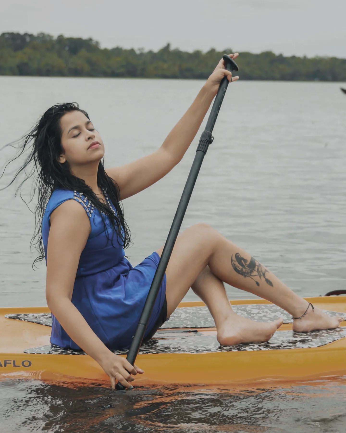 Sadhika Venugopal Kayaking Photos. Sadhika Venugopal is an actress who has made her presence in both television and film industries. She has anchored few programs and also appeared in many advertisements. Sadhika played the lead role in the serial ‘Pattusari’ aired in Mazhavil Manorama.